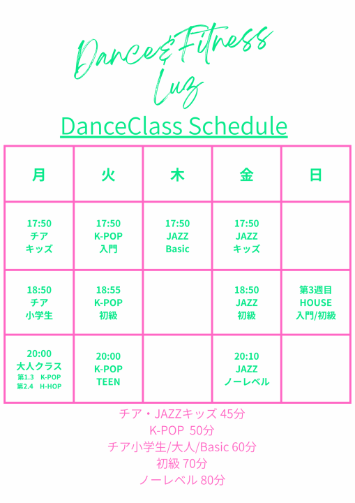 第1.3 K-POP 20:00~21:00 ¥1,000/1回 :1回完結のチケット制。体を動かしたい人集合‼基本的にサビをマスターします。
